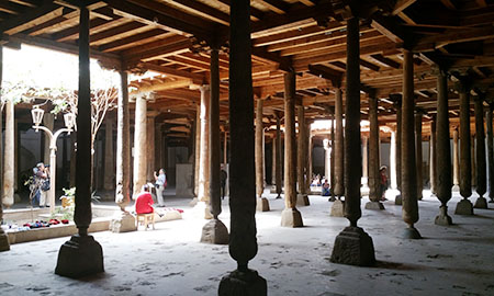 ![]() Jummi Mosque (or Friday Mosque as Muslim pray on Friday). Built in the 10th cen. which contains 212 carved columns. As Khiva is a desert, caravans were requested to bring construction supply along with the trade. |