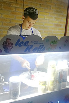 ![]() Cute boy frying ice-cream |