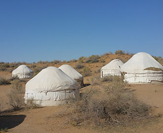 ![]() We spent a night at Safari Yurt, 60 km from Nurota, at the border of sandy Kyzyl Kum Desert and Aydarkul Lake. We wondered why they set up the camp so far away whilst it was already nothing in a 10 min ride from anywhere. |
